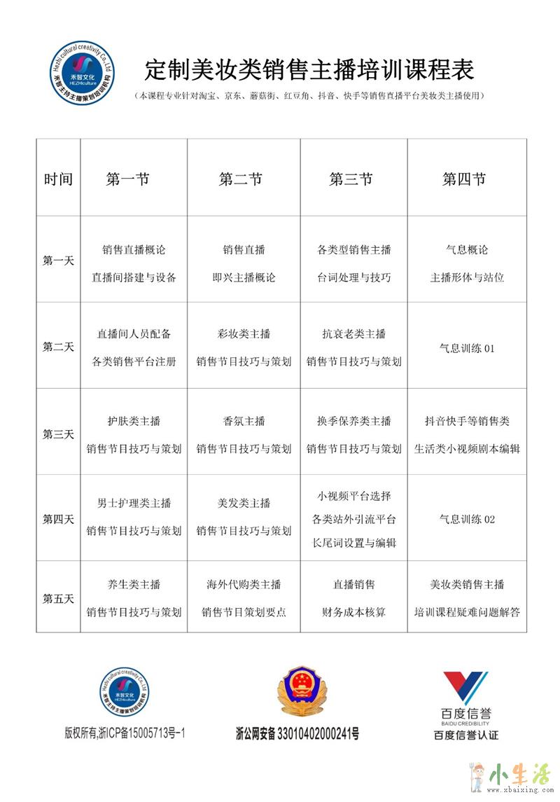 课程内容:气息发音,普通话调整,台词方法原文www.xbaixing.com。销售节目策划(美食类,饰品类,