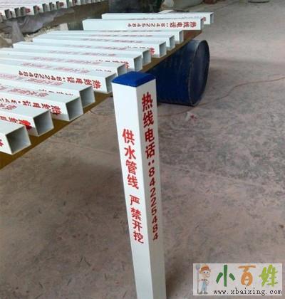 美丽大方 该产品可分类上色、颜色美丽,美丽大方,易保养,不易褪色,国标规范一般为:方形、圆形、三角形;10*10*100cm 12*12*100cm 15*15*100cm;文字内容选用丝网印刷技术,警示作用好,不需求维护原文www.xbaixing.com。重量轻,便于运桩体上的内容包含处理公司的称号和联络方法,当发现地下管道发生损坏时,